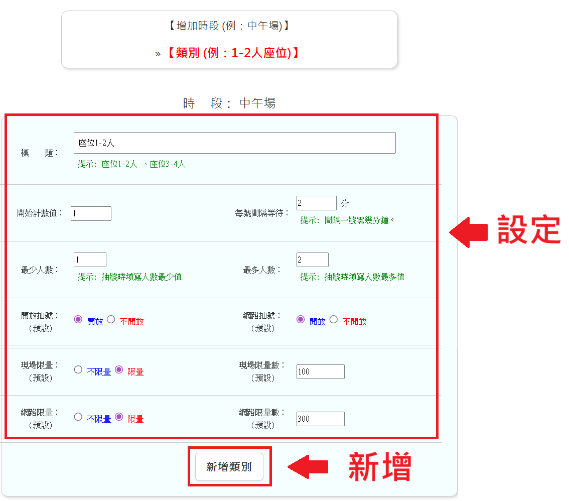 依需求,建立每時段的叫號設定