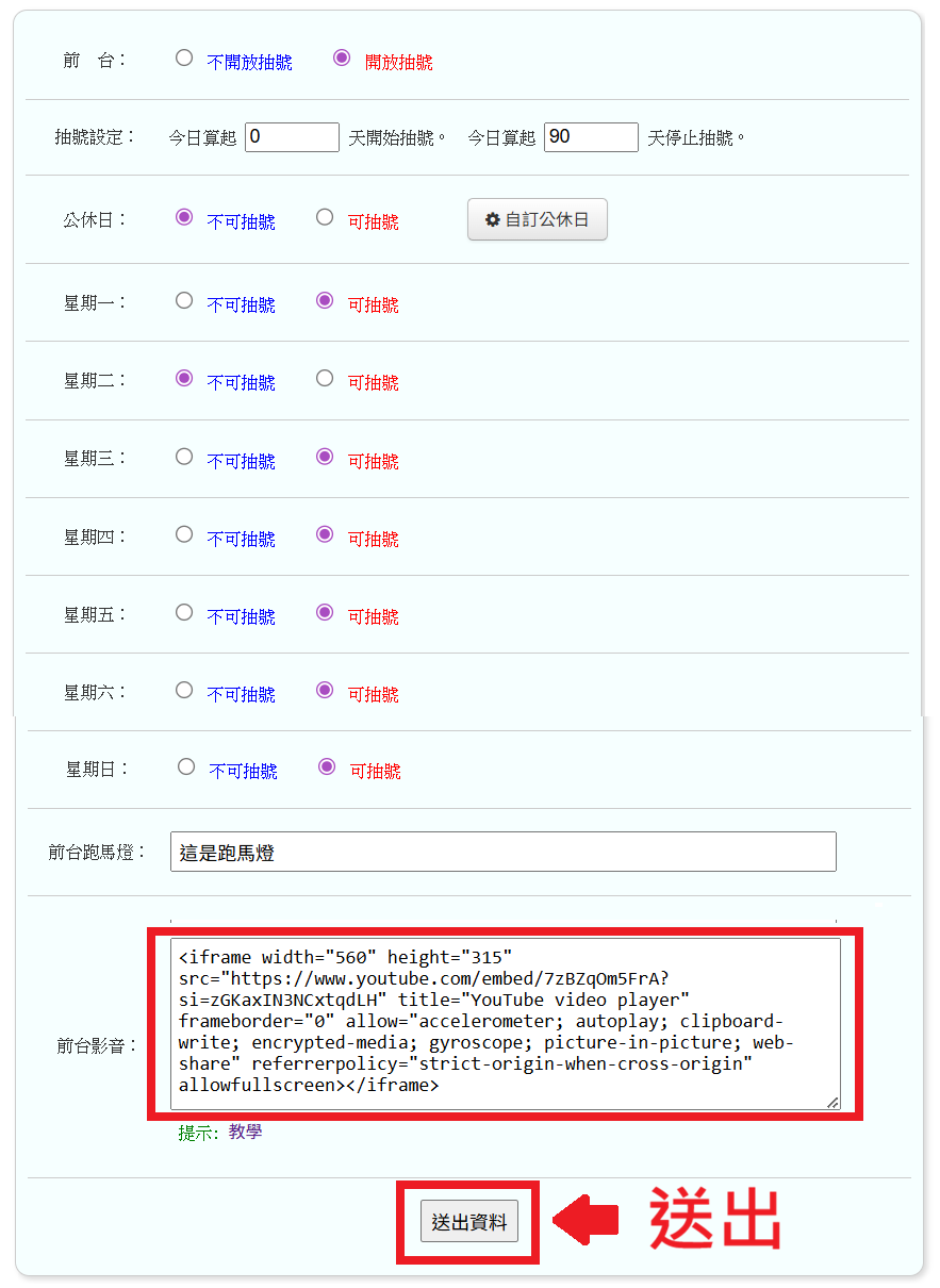登入路徑:叫號系統 / 基本設定 / 抽號設定