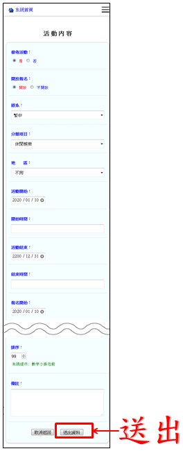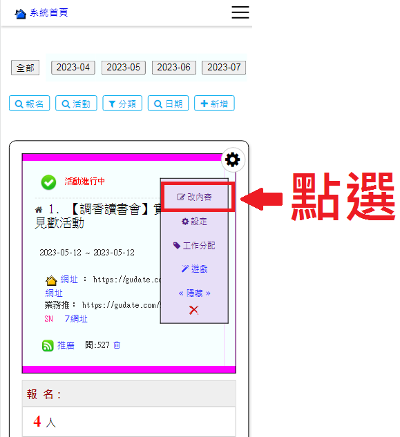 操作路徑:活動管理 -> 修改內容