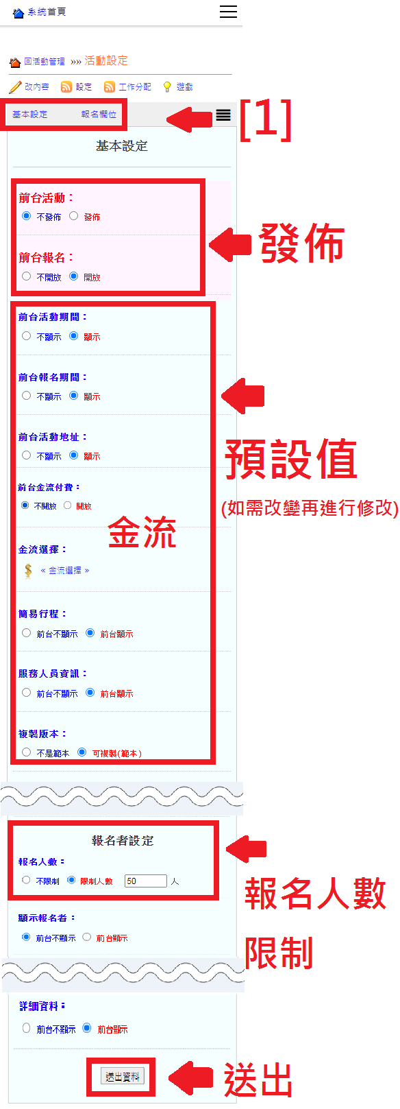 [2] 其它細項設定:非必要,有其它詢問報名資料才依需求啟用