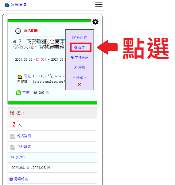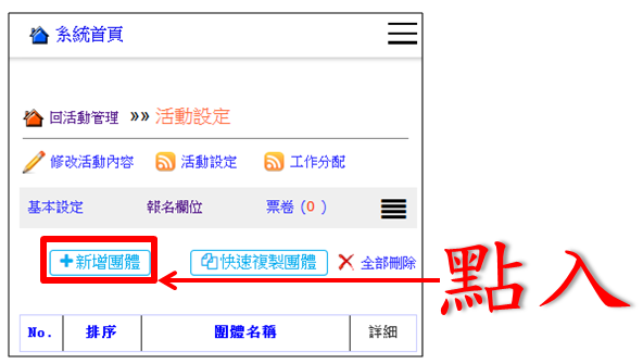 操作路徑:活動管理 -> 設定 -> 團體設定