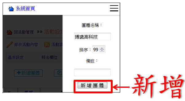 填入團體資料