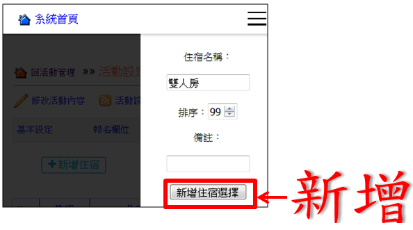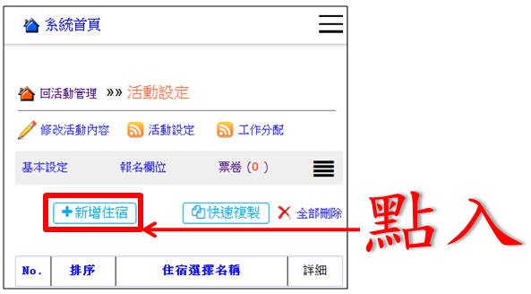 操作路徑:活動管理 -> 設定 -> 住宿設定