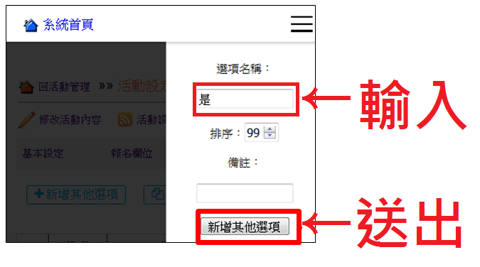 需至「報名欄位」將此項勾選,報名表才會出現此選項