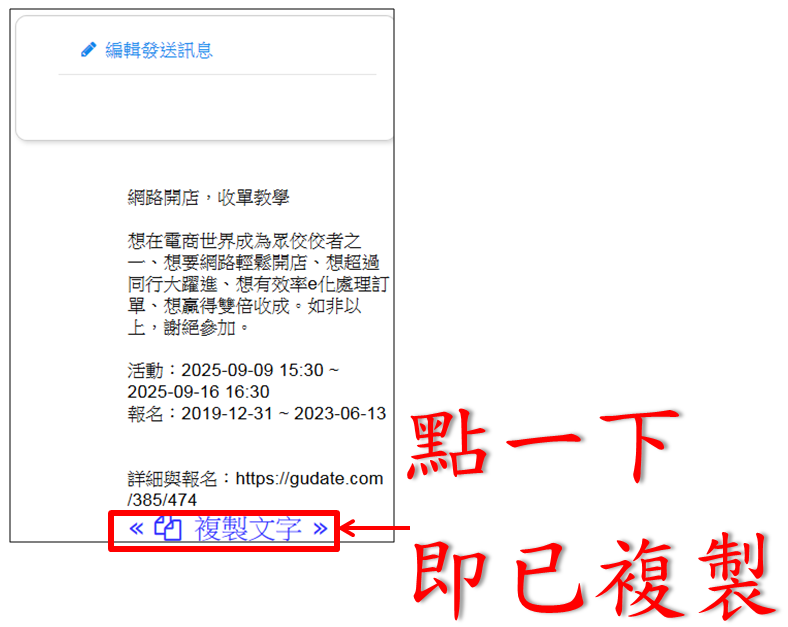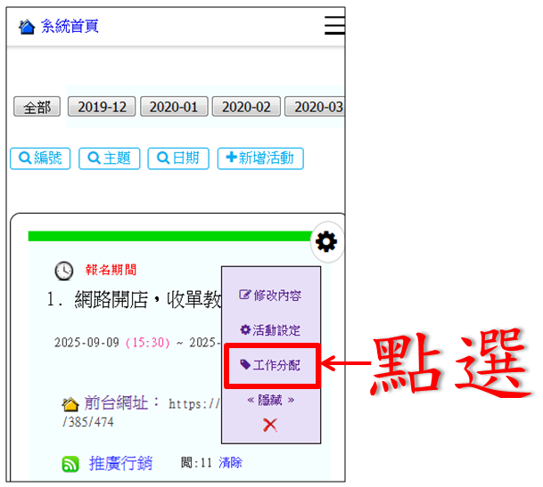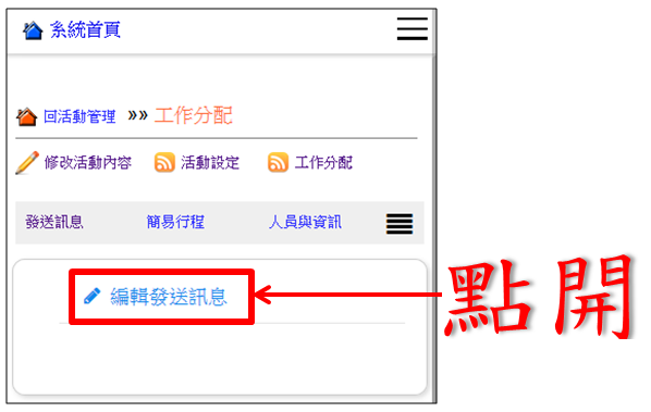操作路徑:活動管理 -> 工作分配 -> 發送訊息