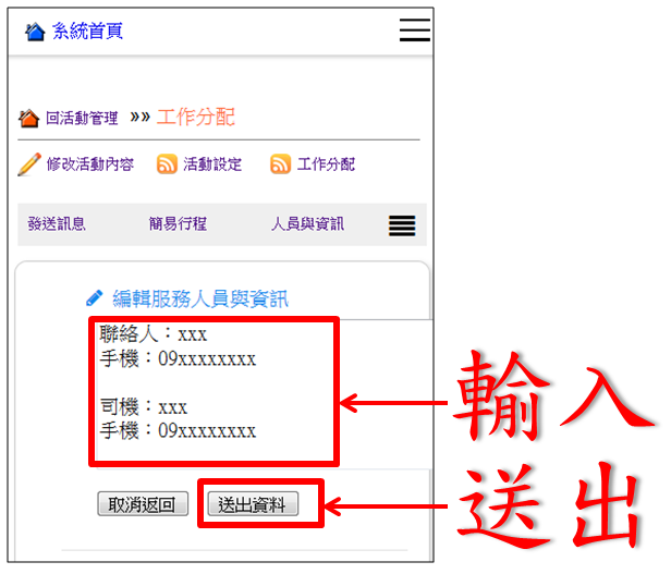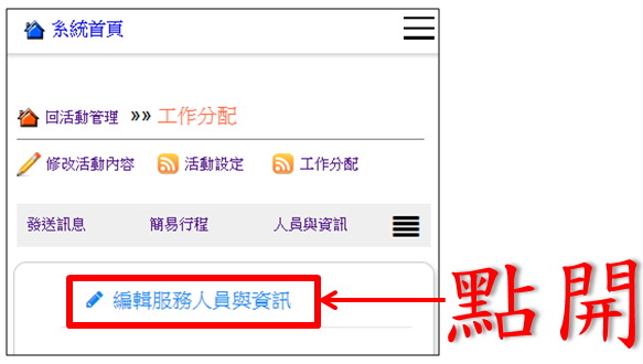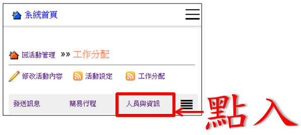 操作路徑:活動管理 -> 工作分配 -> 人員與資訊