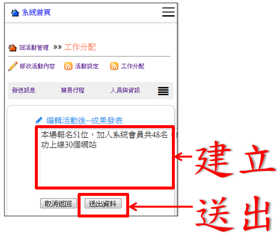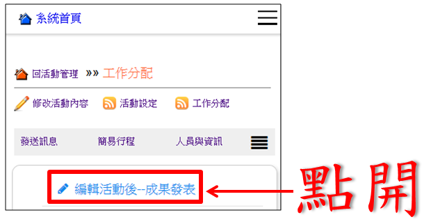 操作路徑:活動管理 -> 工作分配 -> 成果發表