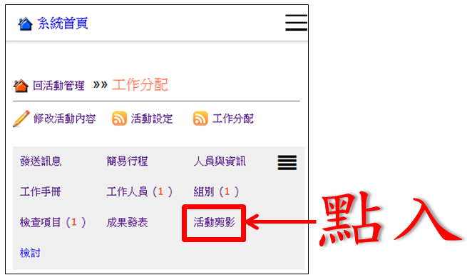 操作路徑:活動管理 -> 工作分配 -> 活動剪影