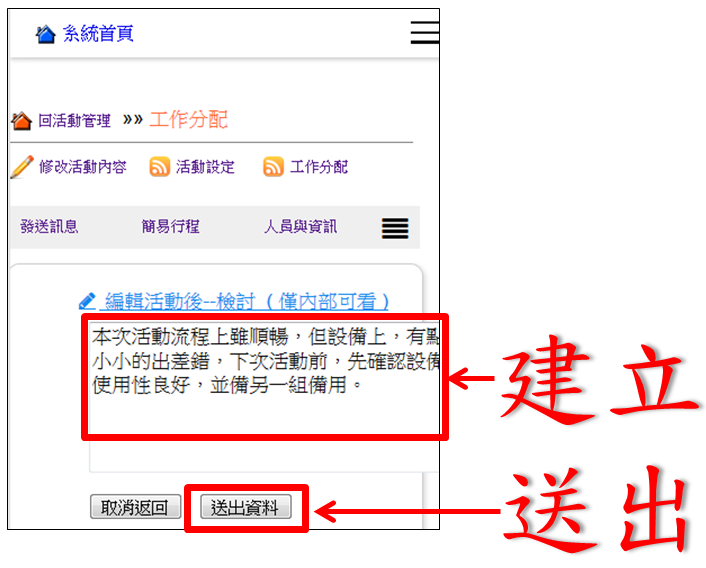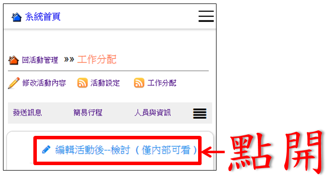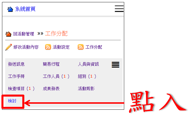 操作路徑:活動管理 -> 工作分配 -> 檢討