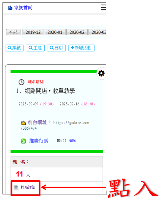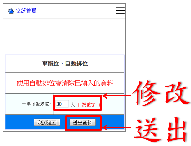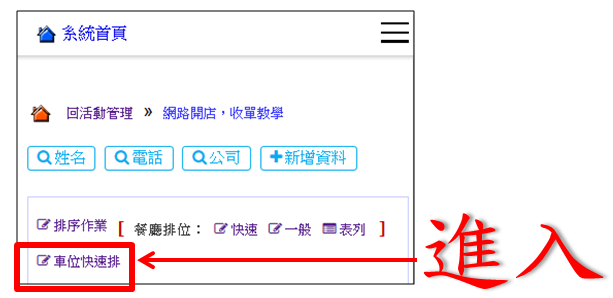 操作路徑:活動管理 -> 報名詳細 -> 車位快速排