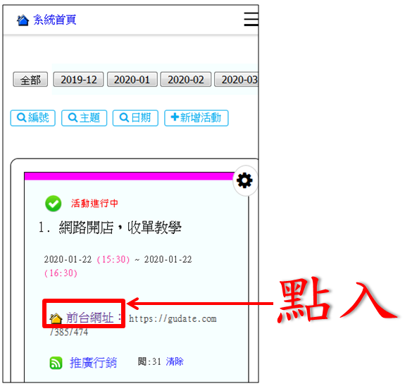 操作路徑:活動管理 -> 前台網址