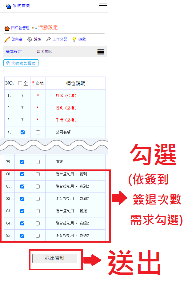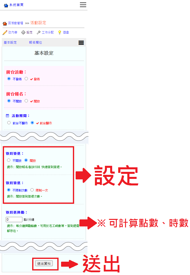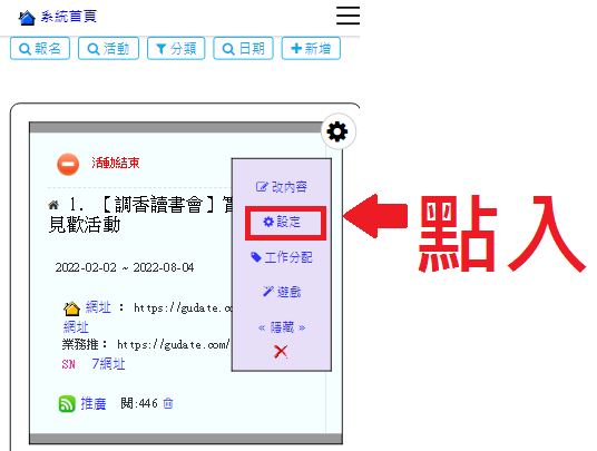 操作路徑:網頁模組 -> 活動管理 -> 設定