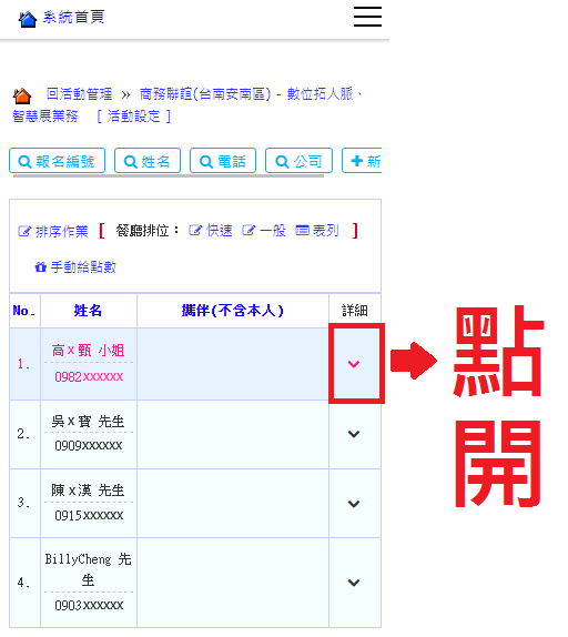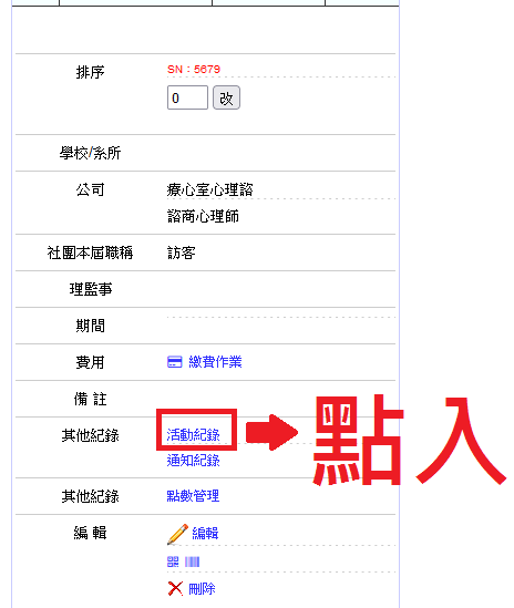 操作路徑:網頁模組 -> 會員管理 -> 活動紀錄