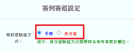 簽到方式:可選擇「手機」或「身份證」