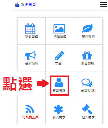 操作路徑:網頁模組 -> 會員管理