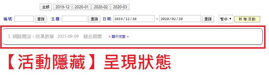 【隱藏活動】方便後台活動多筆時管理,可簡化畫面
