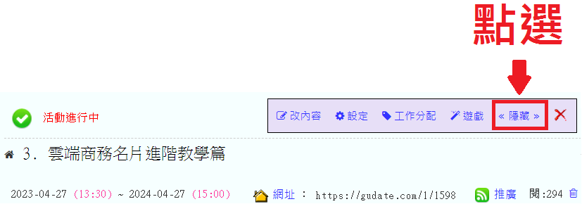 操作路徑:活動管理 -> 隱藏