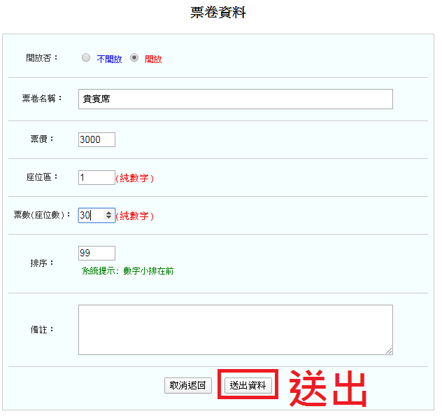 【票卷設定】