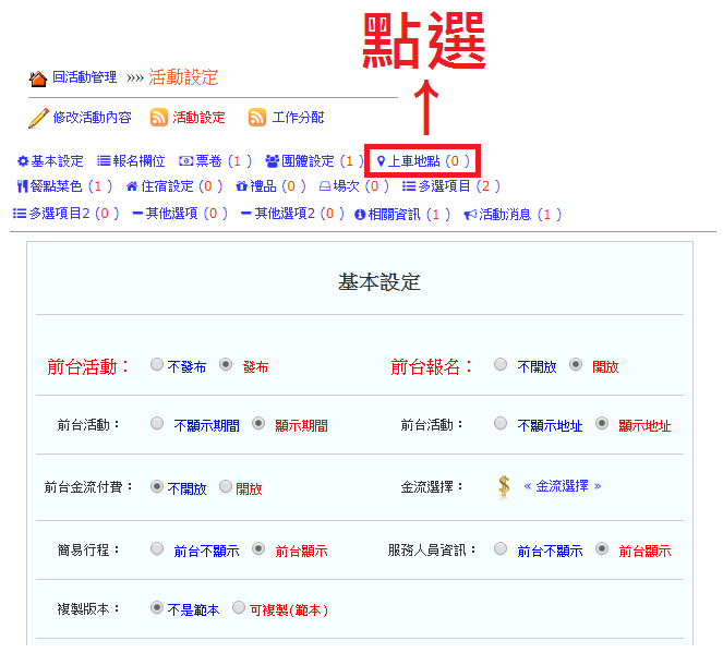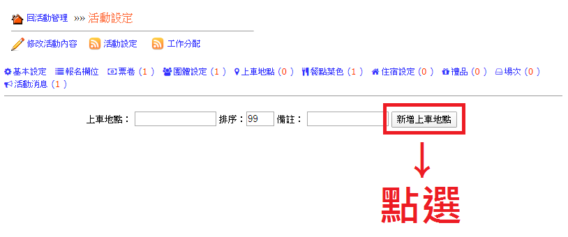 操作路徑:活動管理 -> 設定 -> 上車地點