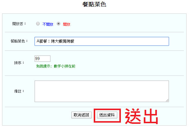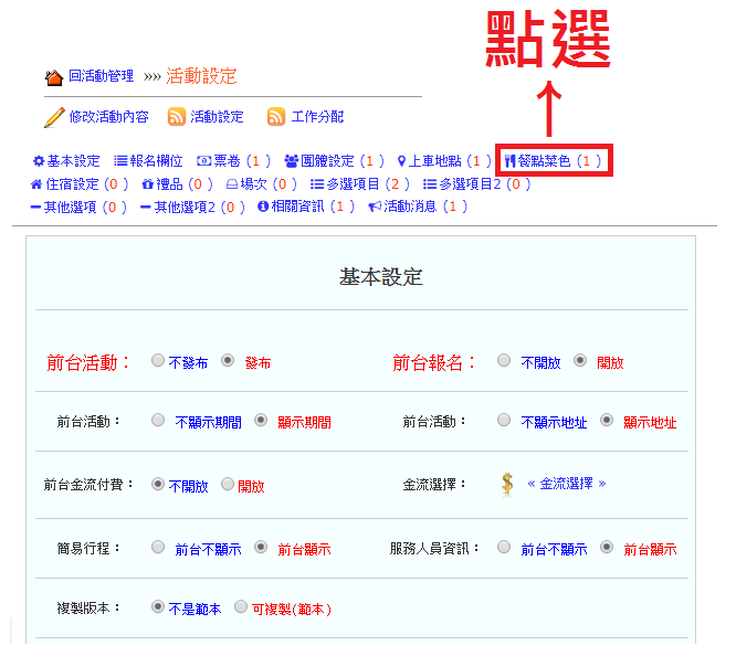 操作路徑:活動管理 -> 設定 -> 餐點菜色
