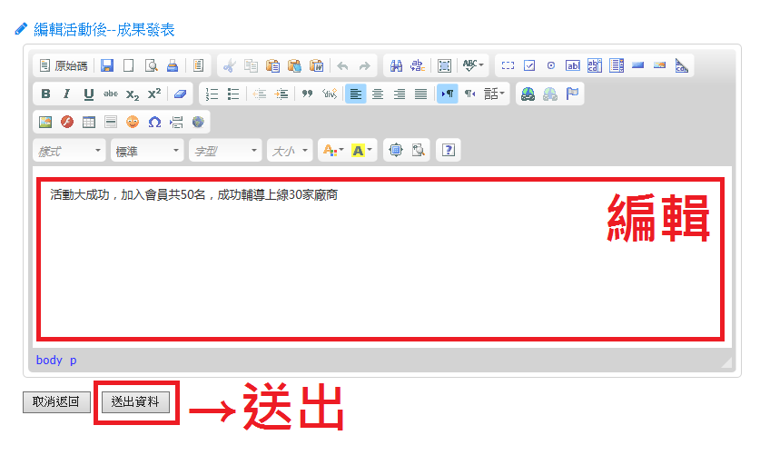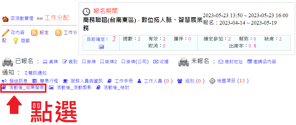 操作路徑:活動管理→工作分配→成果發表