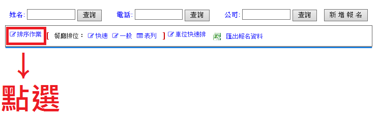 操作路徑:活動管理 ->報名詳細 -> 排序作業