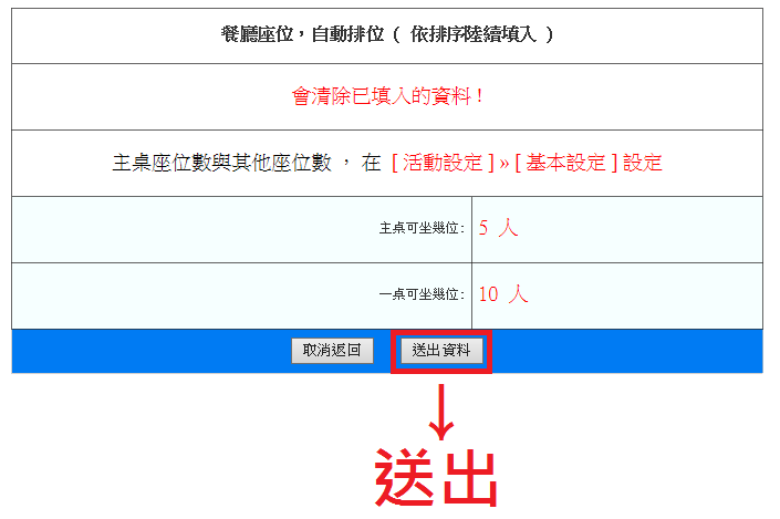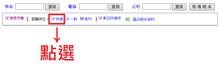 操作路徑:活動管理 -> 報名詳細 -> 餐廳排位