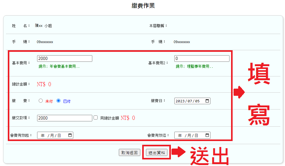操作路徑:網頁模組 -> 會員管理 -> 繳費作業