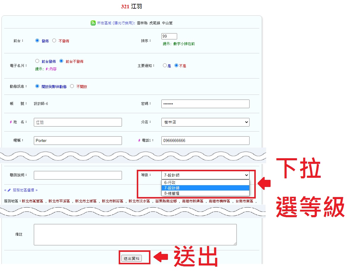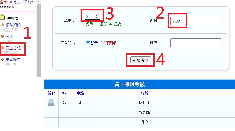 操作路徑:管理者 -> 員工等級(依單位,"2"名稱有所不同)