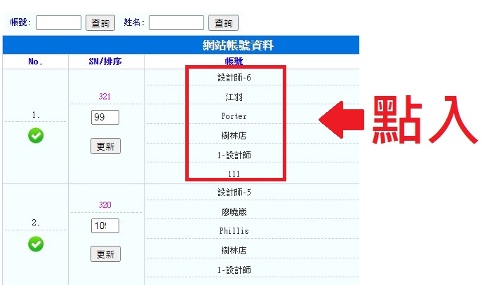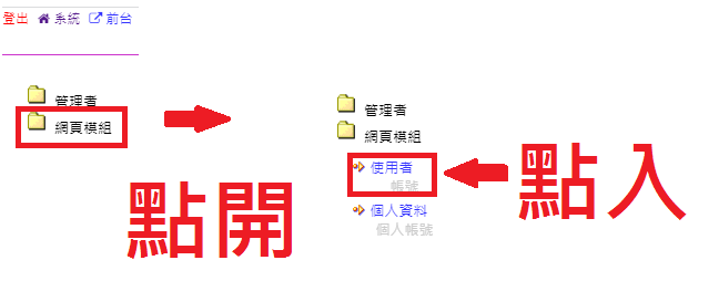 操作路徑:管理者 -> 使用者(依單位,名稱有所不同)