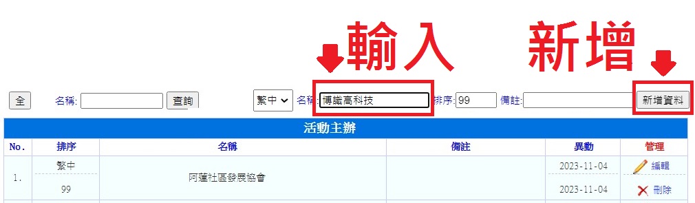 【刪除主辦、屬性、場域】