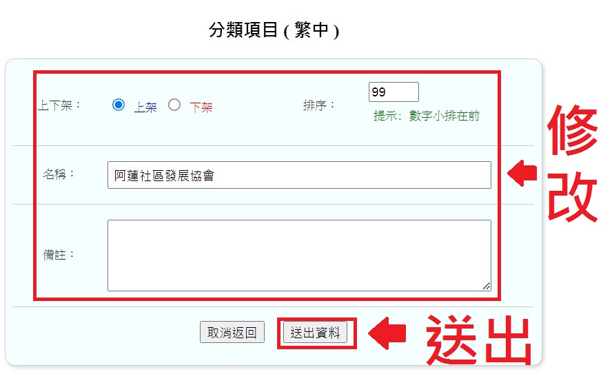 【修改主辦、屬性、場域】
