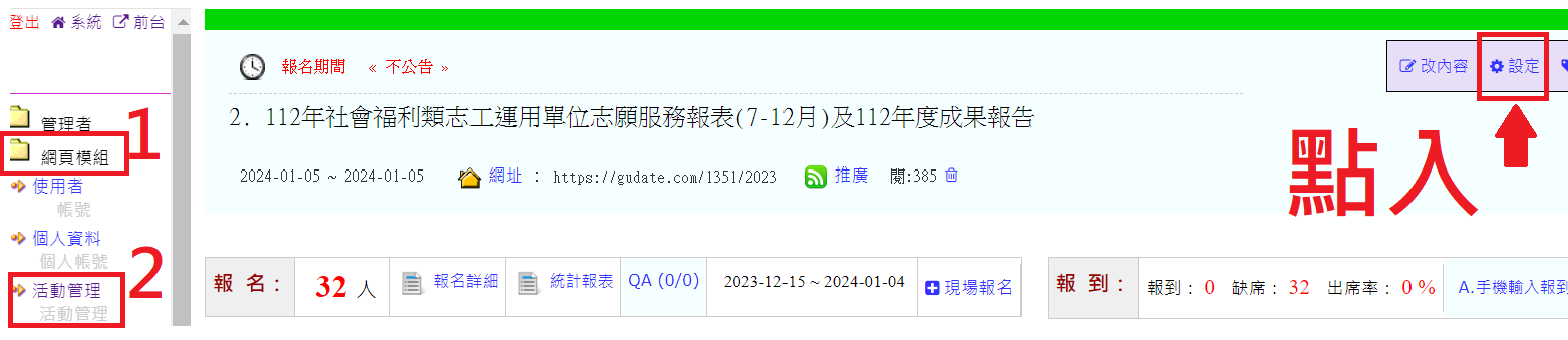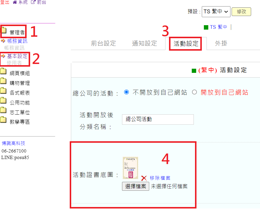 操作路徑:管理者 -> 基本設定 -> 活動設定