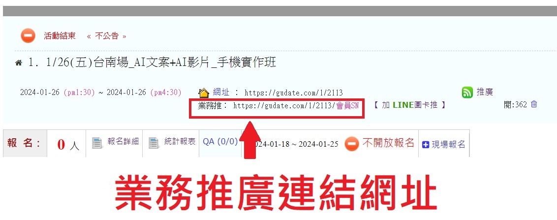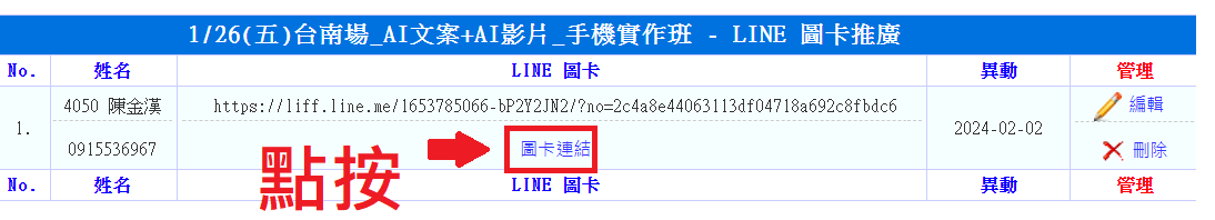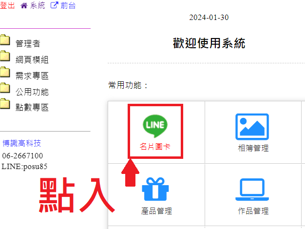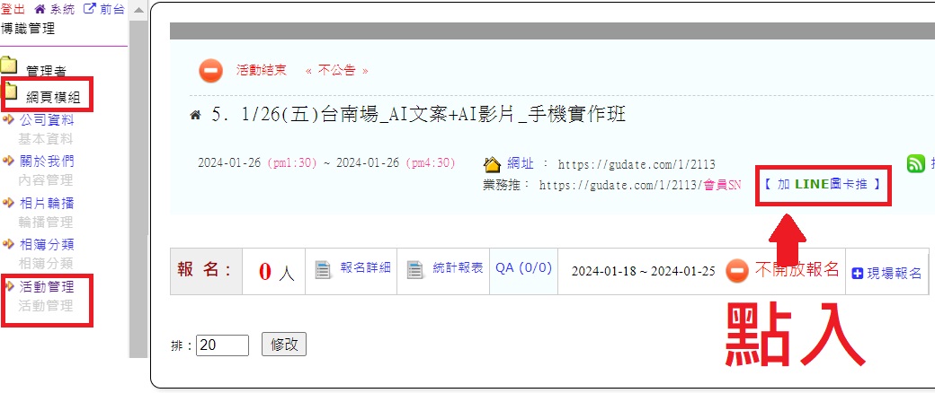 路徑:網頁模組 / 活動管理 / 加LINE圖卡推