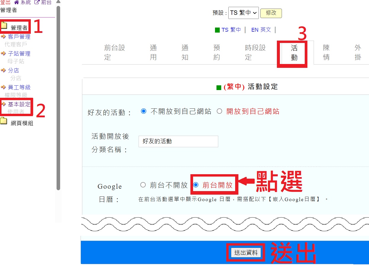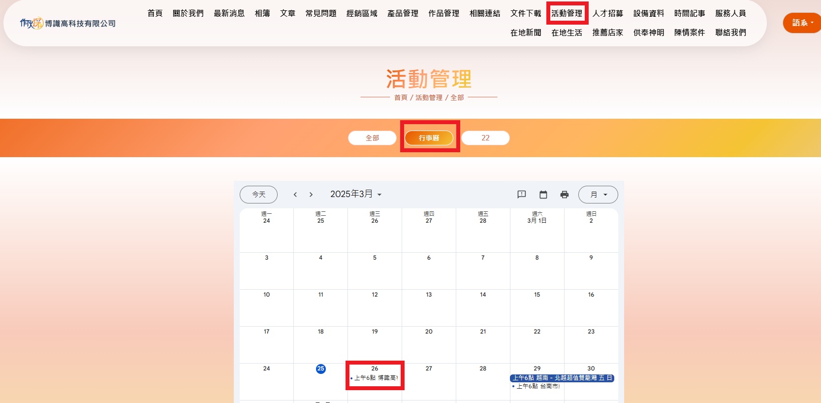 操作路徑:官網 -> 活動管理 -> 行事曆
